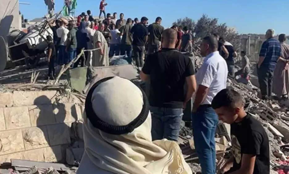 Baskın sırasında Filistinli tutuklunun evi İsrail güçlerince havaya uçurulurken, evde yaşayan annesi, babası ve kız kardeşi evsiz kaldı.