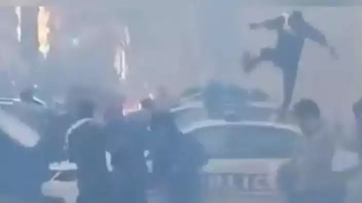 Son olarak sosyal medyada yayınlanan yeni görüntülerde terör destekçilerinin polis araçları üzerine çıkarak zıpladığı, eline aldıkları sopalar ise araçların camını kırmaya çalıştığı görüldü.