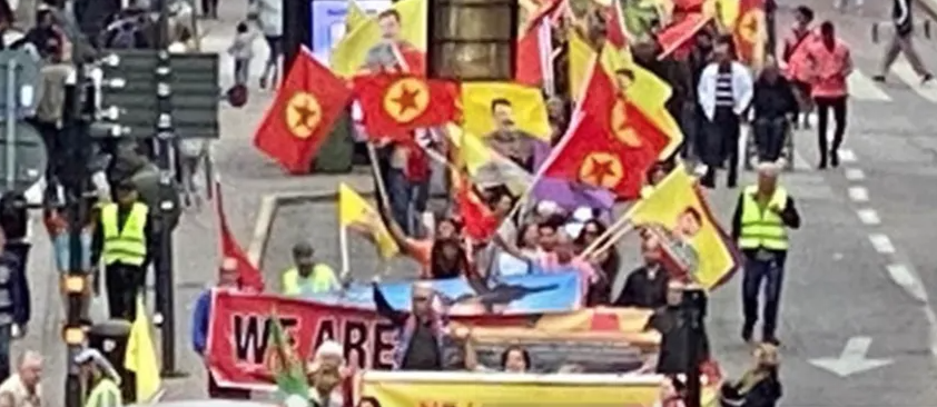 Polis eşliğinde 3,5 saat gösteri yapan terör örgütü destekçileri, İsveç parlamentosunun önüne kadar yürüdü.
