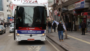 Konvoydaki araçlar Saadet Partisi bayrakları ve Belediye Başkan Adayı Abdullah Akını selamladı