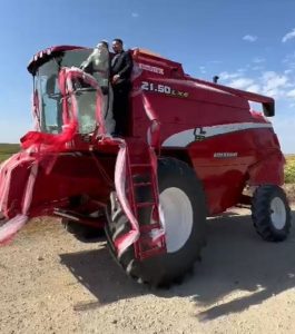 EDİRNE’nin Keşan ilçesinde Nur Sena (25) ve Mustafa Fıçı (26) çifti, gelin arabası olarak biçerdöveri tercih etti.