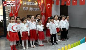 Çok sayıda davetlinin katıldığı programda Kur’an-ı Kerim tilaveti ve şiir dinletisinin yer alırken, etkinlikte minikler geleneksel halk oyunları gösterisi ile beğeni topladı. Bayrak gösterisi salonda coşku dolu anlara sahne olurken, katılımcılardan alkış aldı. Programda miniklerin mutluluğu ve heyecanı görülmeye değerdi.