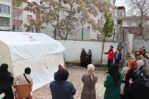 Elazığ Belediyesi ile Kızılay Afet Müdahale Eğitim Merkezi iş birliği ile Elazığ Sivil Katılım Görev Gücü adına ESMEK’te (Elazığ Belediyesi El Sanatları Meslek Edindirme Kursları) eğitim alan kadınlara yönelik yapılan eğitimlerin ilk bölümünde, Türk Kızılay Elazığ Afet Müdahale Müdürlüğü Afet Müdahale Uzmanları Mehmet Ayaok ve Hakan Turus tarafından bilgilendirmeler yapıldı.