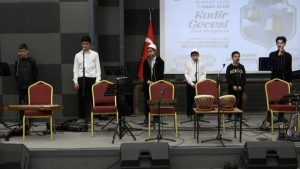 Kadir Gecesi’nin manevi iklimini yaşatmak ve paylaşma ruhunu pekiştirmek amacıyla gerçekleştirilen etkinlikte, Evrensel Kur’an Kursu öğrencileri tarafından icra edilen Kur’an-ı Kerim tilaveti ve dualar eşliğinde manevi atmosfer yaşanırken, tasavvuf musikisi ekibinin ilahileri ile de bu özel geceye ayrı bir anlam katıldı.