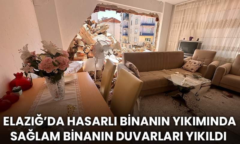 Elazığ’da Hasarlı Binanın Yıkımında Sağlam Binanın Duvarlarınıda Yıktılar.