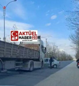 Elazığ Abdullahpaşa Mahallesi Trafo Kavşağı’nda meydana gelen trafik kazasında bir kamyon, seyir halindeki otomobile çarptı.