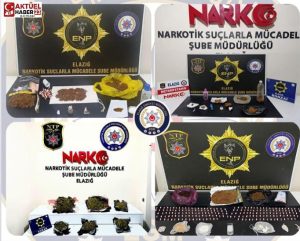Narkotik ve Asayiş ekiplerinin koordineli olarak yürüttüğü operasyonlarda, piyasaya sürülmeye hazırlanan çok miktarda uyuşturucu madde ve suç unsuru ele geçirildi. Emniyet güçlerinin titizlikle yürüttüğü aramalarda ele geçirilen maddeler şu şekilde:
