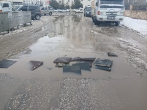 Elazığ’da etkili olan yoğun kar ve yağmur yağışının ardından özellikle Sürsürü ve Ataşehir mahallelerindeki cadde ve sokaklarda büyük çukurlar ve göletler oluştu. Yağış sonrası bozulan yollar sürücüler ve yayalar için adeta çileye dönüştü.