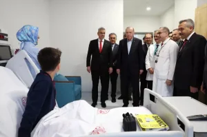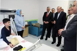 Erdoğan’a “Senden Allah razı olsun. Sen nasıl bir annenin oğlusun” diyerek teşekkür etti. Erdoğan’ın “Beğendin mi burayı?” sorusuna ise “Çok beğendim” yanıtını verdi.Erdoğan, Doruk isimli hasta çocuğun sağlık durumuna ilişkin bilgi alırken, çocuğun Arda Güler forması istediğini dile getirdi. Bunun üzerine Gençlik ve Spor Bakanı Osman Aşkın Bak, formanın temin edileceğini söyledi.Cumhurbaşkanı Erdoğan, Arda Güler’in son golüne de değinerek, “Geçen gün ne yaptı Arda ya? 68 metreden taktı” ifadelerini kullandı. Bakan Bak ise “Avladı kaleciyi” sözleriyle karşılık verdi.Doruk’un annesi de çocuğunun Arda Güler’i çok sevdiğini belirterek, “Dersini bölüp izleyeceği tek şey milli takım maçları ve Arda Güler” dedi.Ziyaret kapsamında Erdoğan’a, kendisinin ve annesinin kara kalemle çizilmiş tablosu hediye edildi. Cumhurbaşkanı daha sonra hastane çalışanlarıyla hatıra fotoğrafı çektirdi ve bayramlarını kutladı. HABER. ERTUĞRUL. DEMİR