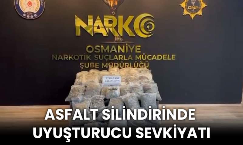 Osmaniye’de bir tırın dorse kısmında bulunan asfalt silindirinin içerisinde 77...