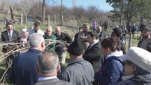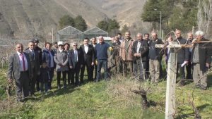 YÜCE, “Keban Meslek Yüksekokulu bünyesinde Bağcılık Programı öğrencilerine uygulama alanı olarak tesis edilmiş bağ alanı 2 dekar alanı kaplamaktadır. Tekirdağ Bağcılık Araştırma Enstitüsünden ve Manisa Bağcılık Araştırma Enstitüsünden temin edilen üzüm çeşitleri ile Elazığ’a ait yerli çeşitlerin aynı bağ tesisinde yan yana ekimi yapılarak ilimize adaptasyonları ve verim karşılaştırılması araştırılmaya çalışılmıştır. Dolayısı ile okulumuzdaki bağ tesisinde 10’u yerli çeşit olmak üzere toplam 18 farklı üzümü çeşidinin kıyaslanması söz konusu olmuştur. Yürüttüğümüz bu çalışmalarda yerli çeşitlerin adaptasyon kabiliyetlerinin ve verimlerinin daha yüksek olduğu tespit edilmiştir. Bahsedilen bu tesis özellikle Keban çiftçileri için örnek teşkil etmiş ve ilçede üzüm yetiştiriciliği konusunda büyük alanları kapsayan birçok yeni bağın ekimine vesile olmuştur. Bölge yıllık ısı değerleri ve güneşlenme yapısı ile bağcılık konusunda ciddi potansiyele sahiptir. Yüksekokulumuzda asma budama eğitimine katılan çiftçilerimize başarılar diler, bağ tesisimizden çıkardıkları üzüm çubuklarının bol verimli olmasını temenni ederiz” dedi.