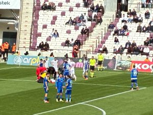 Dakika 45+2: Sağ kanattan kullanılan serbest vuruşta ceza sahasında Sakıb’ın kafası gol oldu ancak hakem öncesinde ofsayta hüknmetti