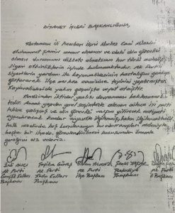 İmamım yakınları, Diyanet İşleri’ne yazılan ve Şahin’in başka bir ilçede görevlendirilmesini isteyen, Pınarbaşı Belediye Başkanı Şenol Yaşar’ın da imzasının olduğu belgeyi paylaştı..