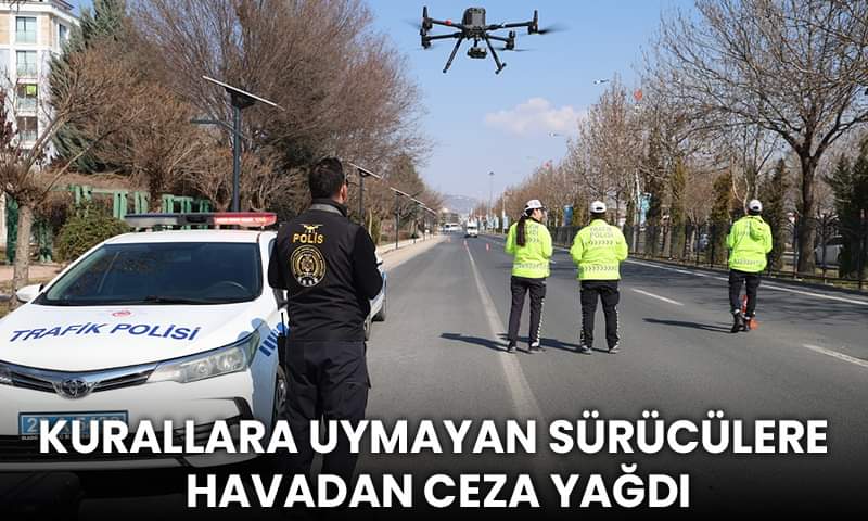Elazığ İl Emniyet Müdürlüğü Trafik Denetleme Şube Müdürlüğü ekipleri tarafından kent genelinde dron destekli trafik denetimi yapıldı. Denetimde kurallara uymayan sürücüler dron ile havadan tespit edildi. Tespit edilen sürücüler, daha sonra trafik ekipleri tarafından durduruldu. Emniyet kemeri takmayan, seyir halinde telefonla konuşan ve kırmızı ışık kuralına uymayan sürücülere cezai işlem uygulandı.