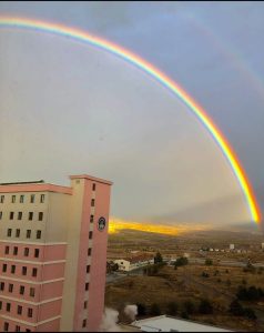 Bulutlarla birlikte oluşan gökkuşağı görenleri kendine hayran bıraktırdı. Gökkuşağı yaklaşık 15 – 2 0 dakika boyunca net bir şekilde gözüktü.