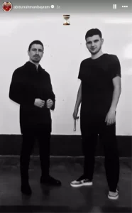 Bayram’ın Instagram hikayesinde Mert Hakan Yandaş ile yan yana fotoğrafının olduğu görüldü. Sakaryasporlu futbolcu, paylaşımına kum saati emojisi ekledi. Görselde iki futbolcunun da elinde tespih olduğu görüldü.                                                                                                                                         HABER.   ERTUĞRUL.  DEMİR