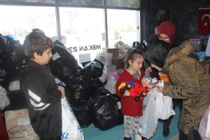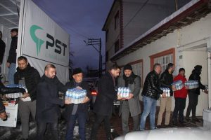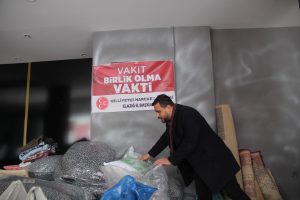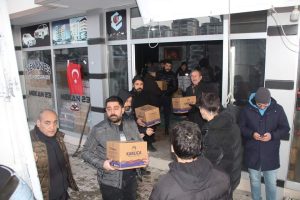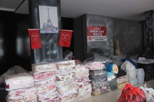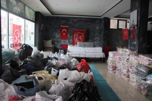 Depremin ilk saatlerinden itibaren yardım çalışmalarına başlayan teşkilatımız, parti binamızın ağır hasarlı olması nedeniyle oluşturmuş olduğumuz ‘AFET MASASINDA’ yardım malzemelerinin deprem bölgelerine bir an önce ulaştırılması için, zamanla yarışarak canla-başla mücadelemizi sürdürerek, birlik beraberlik ruhuyla zor günleri aşacağımıza inanarak çalışmalarımızı sürdürdük.