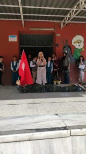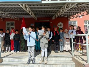 Öğrenciler tarafından İstiklal Marşı okunduğu ve tiyatro gösterisinin yapıldığı programa öğretmenler, veliler ve öğrenciler katıldı.