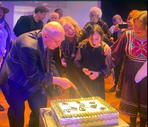 Alâ karga yayınları ve Kartal Belediyesi ortaklaşa düzenledi etkinliğin Osman Sahin hikayeciliği, Sineması, Köy Enstitülerine girişi temalı konuşmalar yapıldı. Osman Şahin belgeselinden bir bölüm davetlilere izlettirildikten sonra Şahin doğum günü pastasının mumlarına torunun kızı Defne Arseven birlikte sahnede söndürdü.