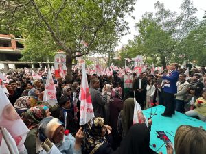 “Elazığ’ın ablası, Elazığ seninle gurur duyuyor” sloganları ile karşılanan Prof. Yasemin Açık, bölge sakinlerine seslendi. Prof. Dr. Açık, “Benim partim teşkilatım yok, benim gönüldaşlarım var. Sizler beni öyle güçlü bir şekilde destekleyeceksiniz ki, Elazığ’ın sesi bütün Türkiye’de yankılanacak. Beni öyle bir oyla gönderinki Elazığ’ın isteklerine kimse sessiz kalamasın. Kimse Elazığ’ın isteklerini karşılamama gibi bir duruma düşemeyecek. Çünkü biz el birliğiyle güç birliğiyle şehrimizin bütün ihtiyaçları için adeta koşacağız” dedi.