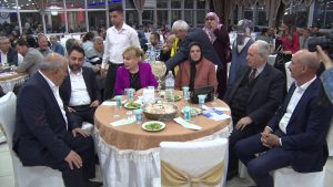 Salona girişte büyük bir destek alkışı ile karşılanan Prof. Dr. Yasemin Açık, masaları tek tek dolaşarak, hemşehrilerini selamladı.