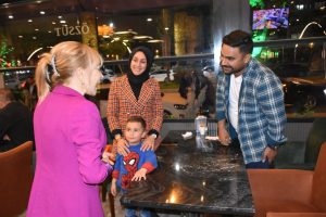 Kimi zaman bir mahallede, bir sokakta, bir işletmede hemşerileri ile kucaklaşan Prof. Dr. Yasemin Açık, kahvehane ve kafe ziyaretlerinde de bulundu.