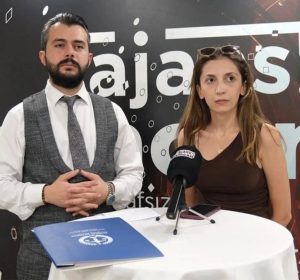 Mağdur kadın avukatıyla birlikte basın açıklaması yaptı.