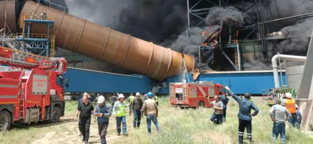 Baca gazı arıtma sistemi ile soğutma kulesinin birleştiği noktada çıktığı belirlenen yangınla ilgili soruşturma başlatıldı.