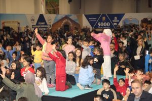 Ahmet Tevfik Ozan Fuar ve Kongre Merkezi’ni dolduran minikler; Hayri, Mert, Kamil, Akın, Sevim ve Hale karakterleriyle birlikte hem şarkı söyleyip dans ettiler hem de spor yapıp doyasıya eğlendiler.