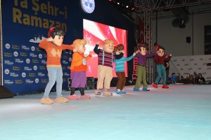 Aileleriyle birlikte Ramazan etkinliklerine katılan minikler, Rafadan Tayfa tiyatro ekibinin gösterisinin ardından kendileri için düzenlenen oyun araç ve gereçleriyle donatılan çocuk etkinlik alanında doyasıya eğlendiler.